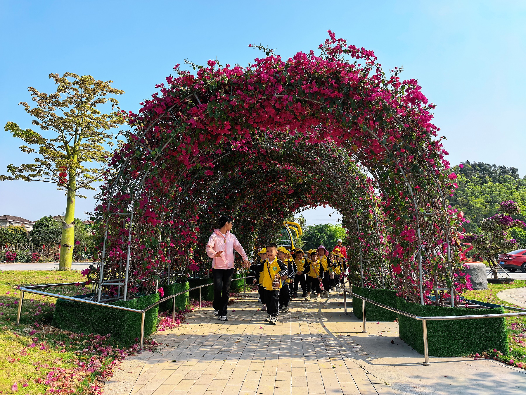 ????走進(jìn)奇榜新村,姹紫嫣紅的簕杜鵑讓人眼前一亮。整潔的村道、環(huán)境優(yōu)美的公園、一幢幢排列整齊的別墅屋,配上花開(kāi)正艷的簕杜鵑,一幅美麗鄉(xiāng)村畫(huà)卷極具視覺(jué)沖擊力,讓幸福生活更加具象化。村里全新打造的兒童公園內(nèi),棵棵簕杜鵑更是被打造成十二生肖的形象,結(jié)合近來(lái)大熱的“哪吒”元素,充滿(mǎn)童趣,有效提升鄉(xiāng)村景觀。