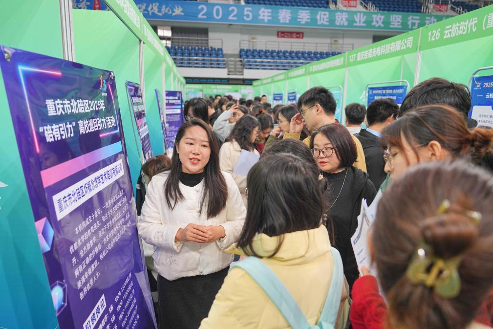 3月28日,西南大學(xué)應(yīng)屆畢業(yè)生在2025年春季促就業(yè)攻堅行動綜合類雙選會現(xiàn)場了解崗位信息。新華社發(fā)(秦廷富攝)