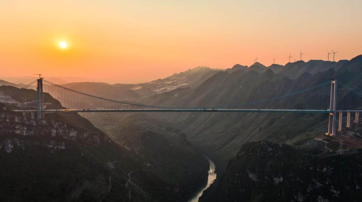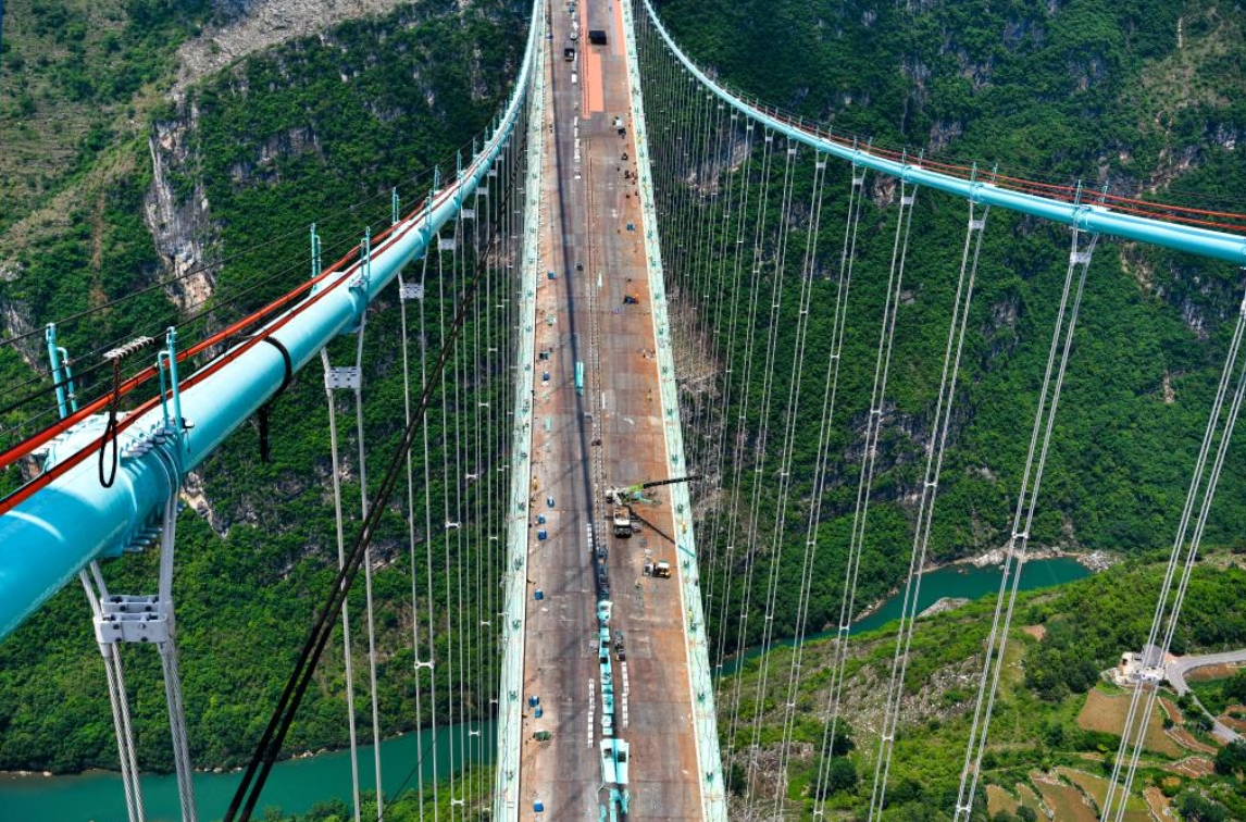 花江峽谷大橋是貴州六安高速公路的關(guān)鍵控制性工程,全長(zhǎng)2890米,橋墩最大高度262米,主橋跨徑1420米,于2022年1月正式開工。這座鋼桁梁懸索橋建成后將成為新的世界第一高橋。