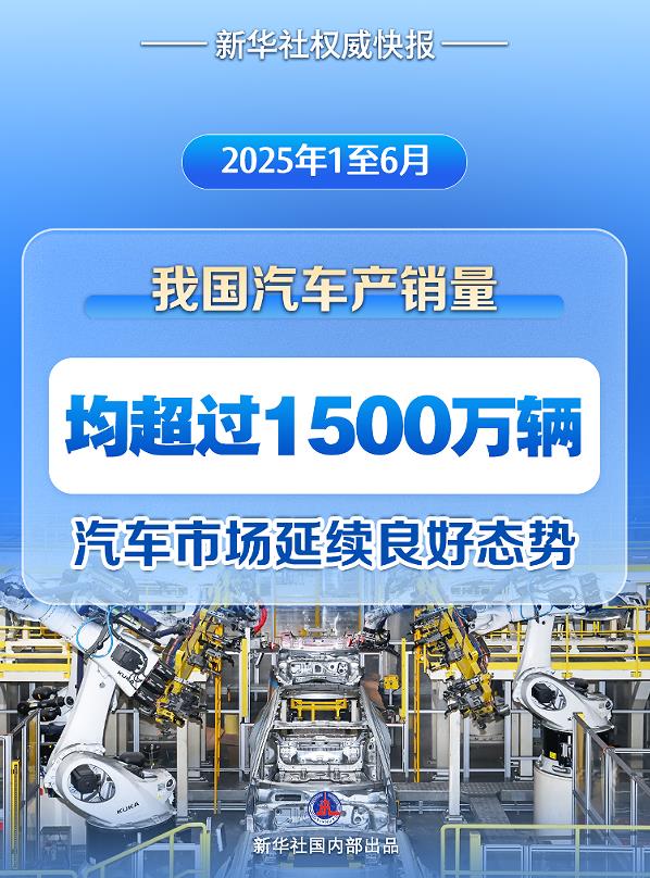 ??? 新華社北京7月10日電(記者唐詩(shī)凝)中國(guó)汽車(chē)工業(yè)協(xié)會(huì)10日發(fā)布的數(shù)據(jù)顯示,2025年上半年我國(guó)汽車(chē)產(chǎn)銷(xiāo)量首次雙超1500萬(wàn)輛,均同比實(shí)現(xiàn)兩位數(shù)增長(zhǎng),汽車(chē)產(chǎn)業(yè)活力持續(xù)釋放。