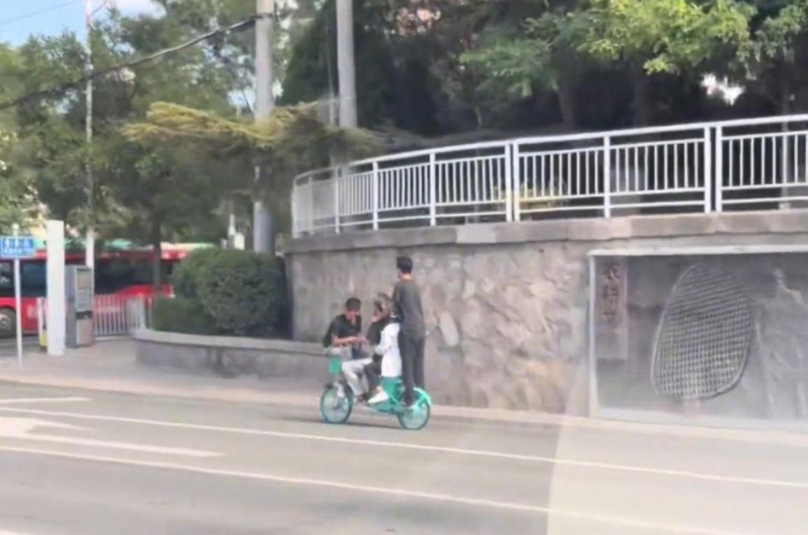 ??2025年7月,甘肅蘭州市4名未成年人正在同乘一輛共享電動(dòng)車(chē)。(蘭州市公安局交警支隊(duì)供圖)