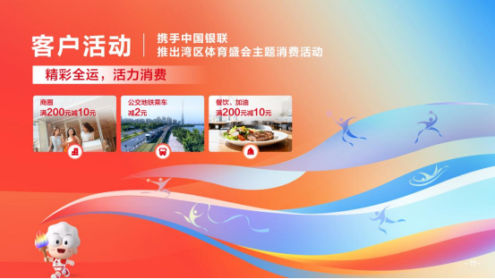 同時(shí),廣發(fā)銀行即將推出銀聯(lián)消費(fèi)優(yōu)惠活動(dòng)?;顒?dòng)期間持有廣發(fā)銀行“社保一卡通”的大灣區(qū)市民,除了可以享受公交互聯(lián)互通、景區(qū)文旅、長(zhǎng)者飯?zhí)谩⑨t(yī)保消費(fèi)權(quán)益之外,還可以在廣東省內(nèi)多家熱門(mén)商圈、特色食肆、加油站疊加享受刷卡消費(fèi)滿減的實(shí)惠福利。