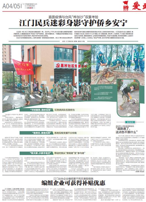 直面疫情與臺風“樺加沙”雙重考驗 江門民兵迷彩身影守護僑鄉(xiāng)安寧